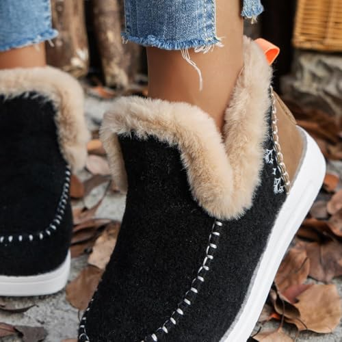 Women's Winter Snow Boots Slip on Ankle Booties with Faux Fur Lining, Warm Plush Short Boots Anti-Slip Outdoor Comfortable Casual Fluffy Shoes