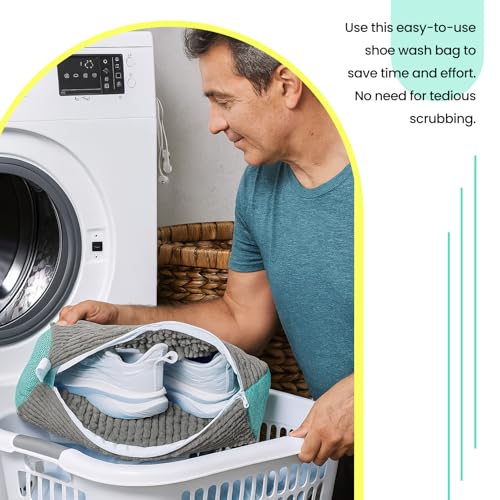 Reusable Shoe Washing Bag for Machine - Protective Laundry Shoe Cleaner with Chenille Fibers for Sneakers & Athletic Shoes - Yellow