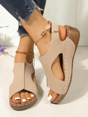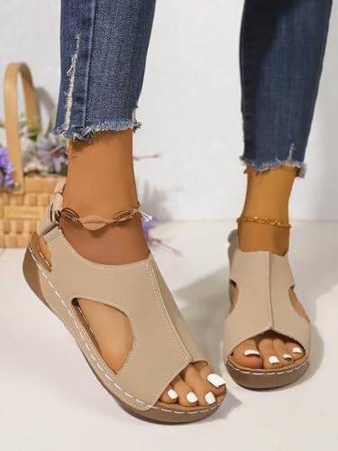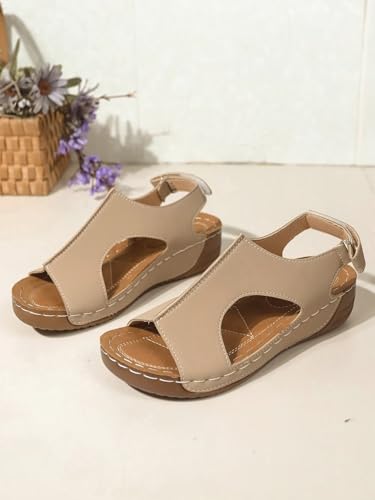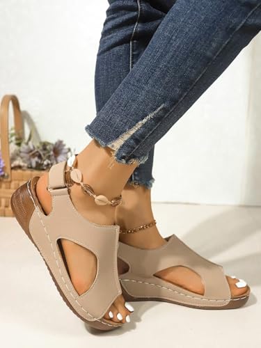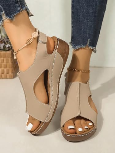 Plus Size Women's Hook & Loop Sandals - Platform Beach Wedges with Breathable Cut-Out Design & Non-Slip Stitched Seams, Wide Width Orthopedic Summer Shoes