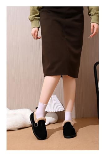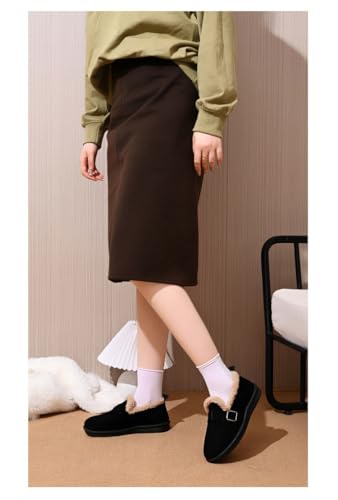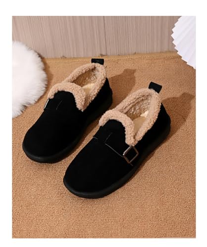 Women's Faux Suede Fuzzy Lined Loafers, Buckle Decor Slip-On Comfortable Warm Casual Shoes for Winter