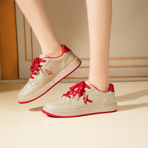 Women's Classic Fashion Sneakers Versatile Casual Walking Shoes Leather Comfort Skate Shoes Lightweight Non-Slip Flat Shoe Lace-up Minimalist Tennis Footwear