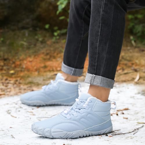 Winter Barefoot Boots Women Men Hiking Shoes, Waterproof Warm Fur Lined Zero Drop Boots Non-Slip Wide Toe Box Comfortable Hike Barefoot Shoes Walking Outdoor Footwear