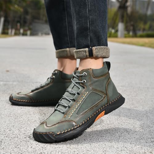 Mens Leather Boots, Men's Comfortable Handmade Leather Boots – Waterproof, Pressure Relief,Spacious Toe Box