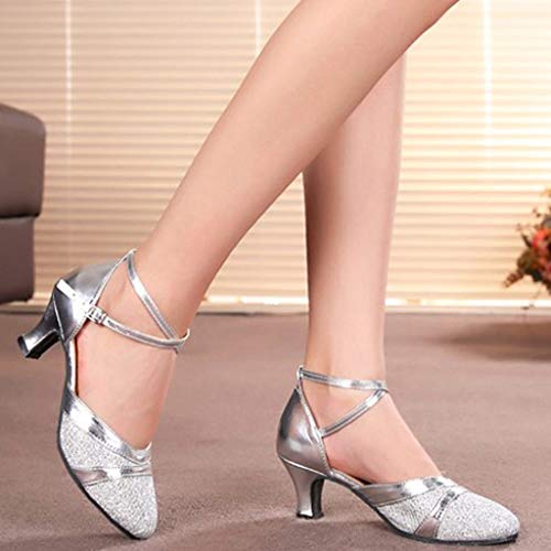 Women's Ballroom Tango Latin Dancing Shoes Sequins Shoes Social Dance Shoe Chunky Low Heel