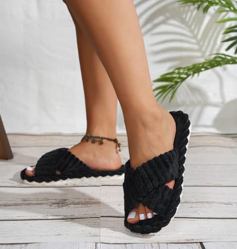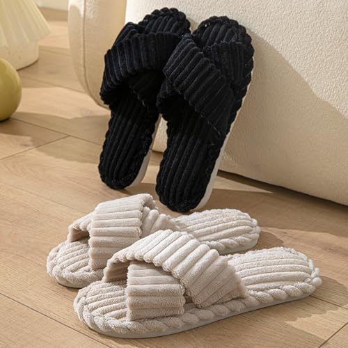 Slippers for Women Memory Foam House Bedroom Corduroy Crossbands Open Toe Slides Slipper Shoes Comfy Trendy Gift Slippers