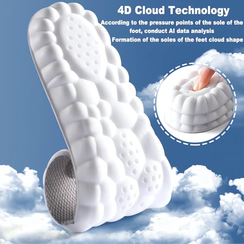4D Cloud Soles Memory Foam Insoles for Men/Women - Arch Support Shoe Inserts with Acupressure Massage Foot Pain Relief & Fatigue Reduction for Sports/Running(US-Unisex-9-10)
