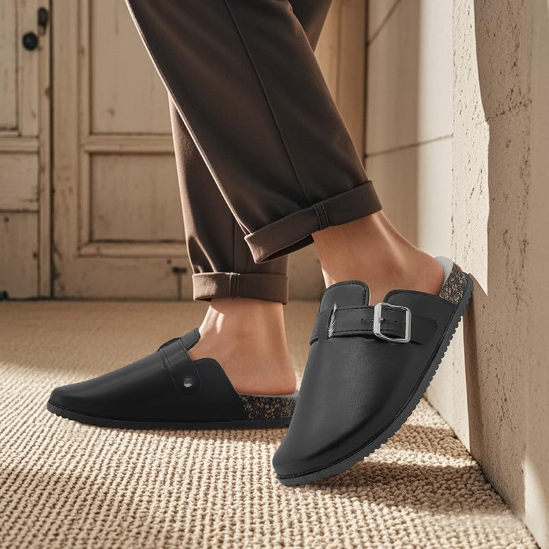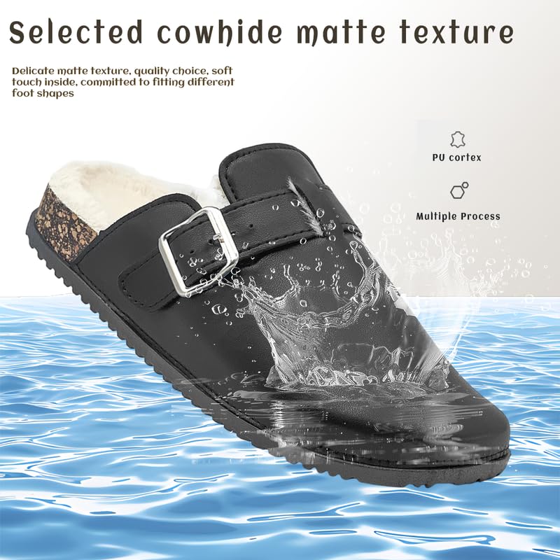 Suede Clogs for Women Men Fuzzy PU Soft Cork Footbed Leather Mules Comfort Potato Shoes with Arch Support