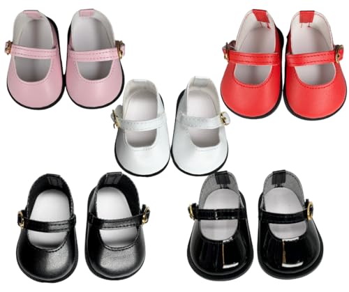 18" American Doll Shoes- Mary Jane Matte Black, Red, White, Pink, Shiny Black Shoe (18" Doll, Pink)