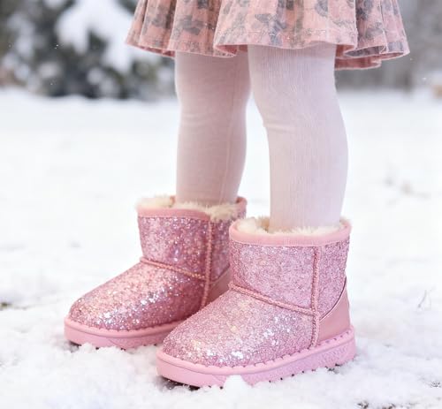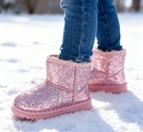 Girl's Boots Kids Glitter Snow Boots Warm Winter Shoes Sparkle Sequin Cute Outdoor Slip Resistant Ankle Boot(Toddler/Little Kids)