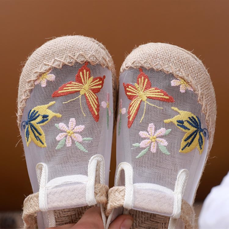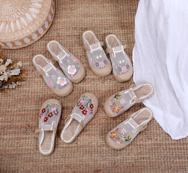 Women's Chinese Mesh Slipper Floral Sandals, Cute Embroidery Mesh Shoes for Summer with Braided Insoles