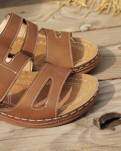 Women's Bohemian Sandals, Comfortable Anti-Slip Platform, Casual Summer Shoes, Breathable Faux Leather Beach Slides