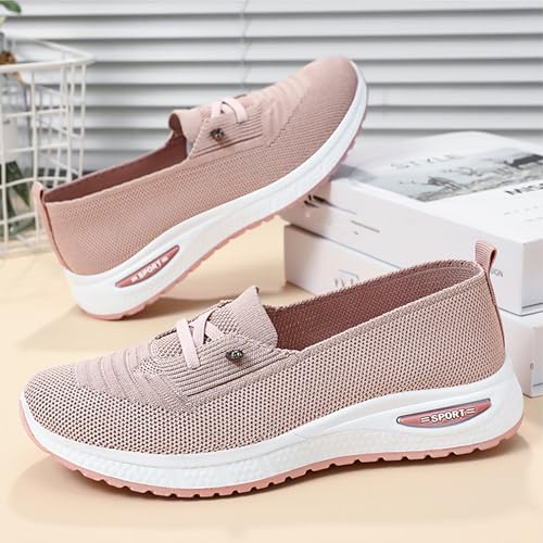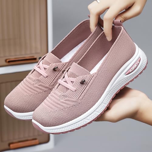 Women's Breathable Knitted Mesh Slip-On Loafers Lace Up Lightweight Orthopedic Low Top Soft Sole Sneakers Platform Non-Slip Outdoor Sport Tennis Shoes