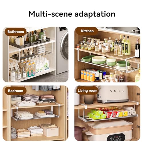 Expandable Shoe Rack Organizer - Adjustable Shoe Rack & Under Cabinet Shelf - for Shoe or Clothing Storage and Organization, Under Shelf Storage (Stainless,2Pcs)