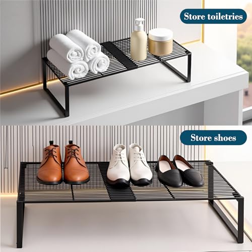 Extendable Metal Wire Shelf Organizer - Adjustable 15-24.4in Length, Stackable Storage Rack for Kitchen/Pantry/Bathroom/Shoe Cabinet/Tool Closet (4, White)